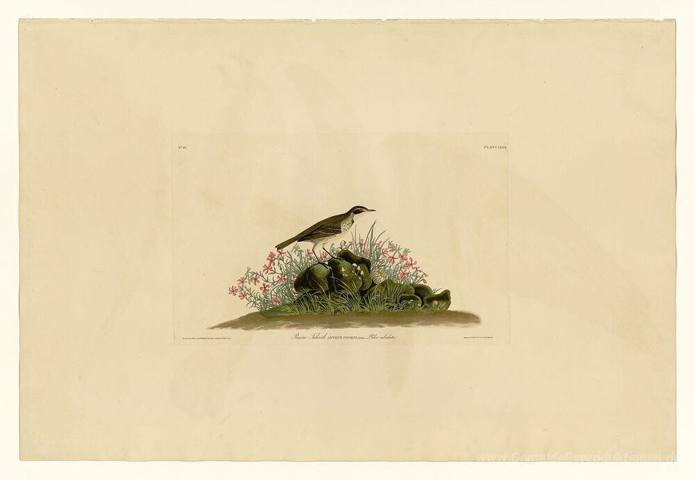 Wir bieten Ihnen eine handgefertigte Reproduktion auf Leinwand des berühmten Kunstwerks 'Platte 80 Prairie Titlark' von John James Audubon, aus dem Reproduktionsmuseum.