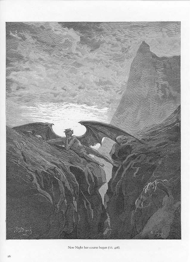 Wir bieten Ihnen eine handgefertigte Reproduktion auf Leinwand des berühmten Kunstwerks 'Plattennummer. 26 Buch VI Leitung 406 'Now Nacht ihren Kurs bega' von Gustave Dore, aus dem Reproduktionsmuseum.