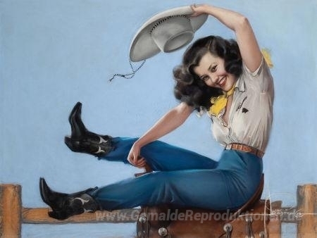 Willkommen in der faszinierenden Welt der Ölgemälde, wo Kunst und Emotion eine harmonische Verbindung eingehen. In unserer exklusiven Kollektion finden Sie Werke wie Ridin' High von Rolf Armstrong, das durch seinen unverwechselbaren Stil und seine lebendigen Farben besticht. Armstrong, ein Meister der figurativen Malerei, verbindet in seinen Kunstwerken emotionale Tiefe mit einem geschickten Einsatz klassischer Techniken, wodurch jede Leinwand zu einem einzigartigen Erlebnis wird.