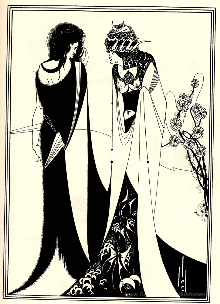 Wir bieten Ihnen eine handgefertigte Reproduktion auf Leinwand des berühmten Kunstwerks 'Salome mit ihrer Mutter' von Aubrey Beardsley, aus dem Reproduktionsmuseum.