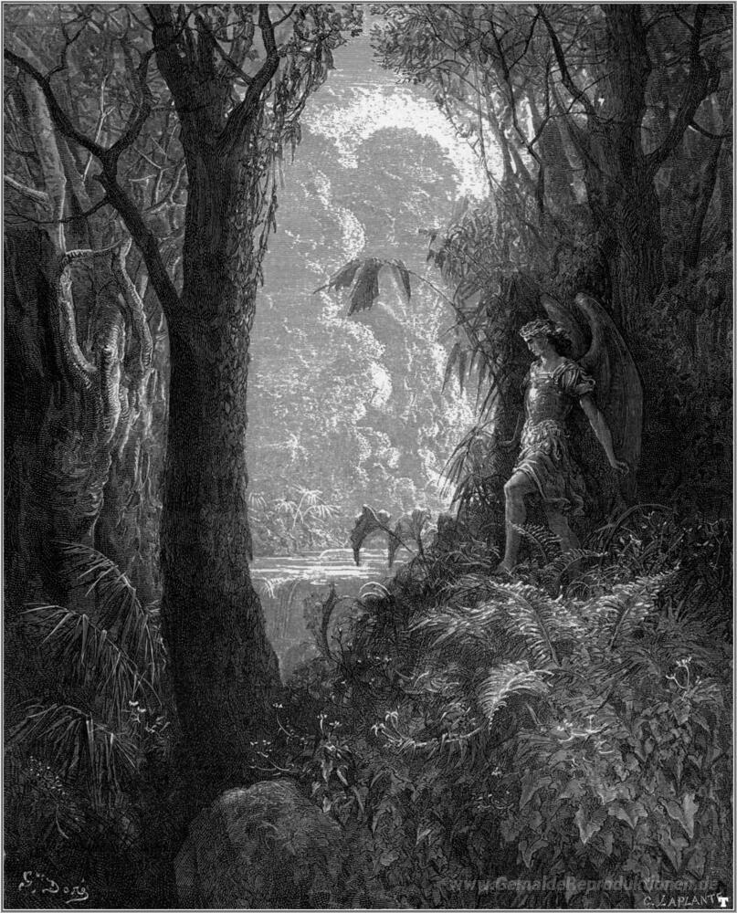 Wir bieten Ihnen eine handgefertigte Reproduktion auf Leinwand des berühmten Kunstwerks 'Satan im Paradies' von Gustave Dore, aus dem Reproduktionsmuseum.