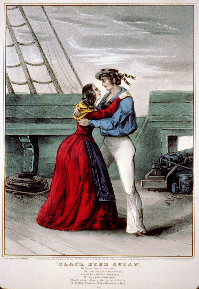 Wir bieten Ihnen eine handgefertigte Reproduktion auf Leinwand des berühmten Kunstwerks 'Schwarzes gemusterte Susan-' von Currier and Ives, aus dem Reproduktionsmuseum.