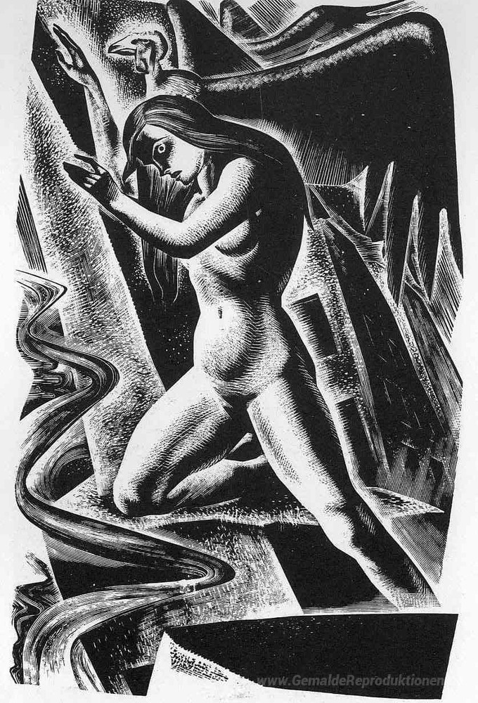 Wir bieten Ihnen eine handgefertigte Reproduktion auf Leinwand des berühmten Kunstwerks 'Schwindel' von Lynd Ward, aus dem Reproduktionsmuseum.