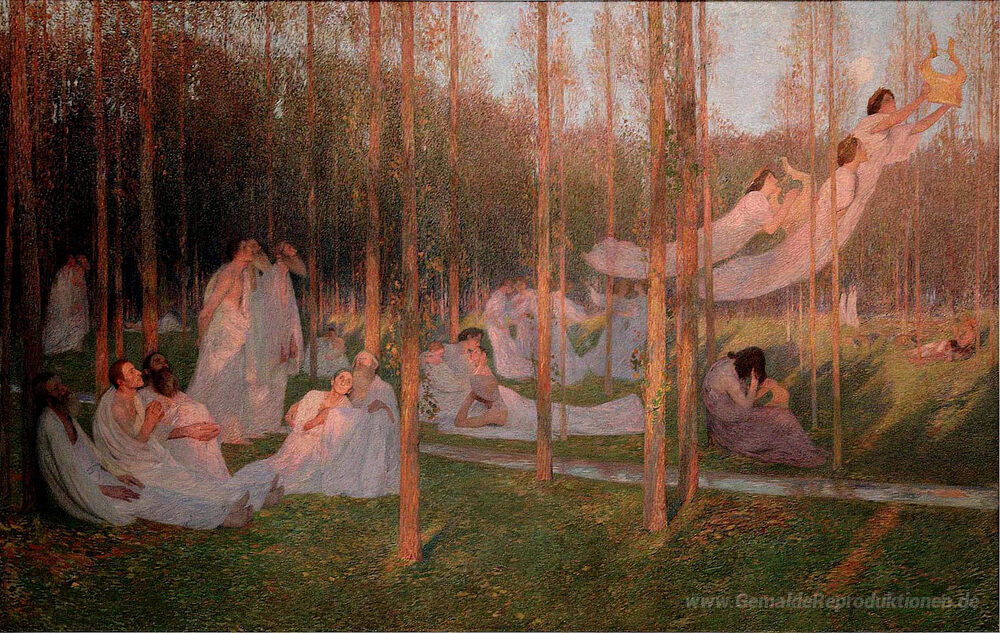 Wir bieten Ihnen eine handgefertigte Reproduktion auf Leinwand des berühmten Kunstwerks 'Serenity, Illustration für Buch VI der Aeneis' von Henri Martin, aus dem Reproduktionsmuseum.