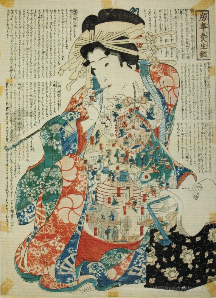Der unverwechselbare Stil von Utagawa Kunisada kombiniert lebendige Farben mit detaillierten Kompositionen, die das Ambiente jedes Raumes bereichern. Die künstlerischen Techniken, die er anwendet, wie geschickte Farbverläufe und präzise Linienführung, verleihen seinen Gemälden eine eindringliche Präsenz. Mit dem Kunstwerk Sexual Life Rules holen Sie sich nicht nur ein Stück Geschichte, sondern auch ein emotionales und inspirierendes Element in Ihre Wohn- oder Arbeitsräume, das Atmosphäre und Stil harmonisch vereint.
