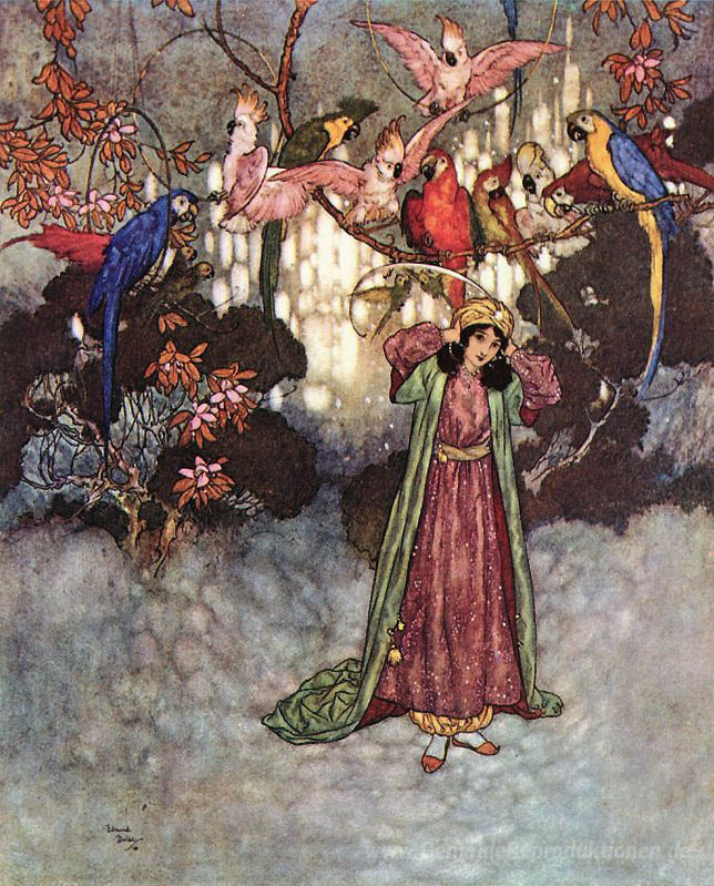 Wir bieten Ihnen eine handgefertigte Reproduktion auf Leinwand des berühmten Kunstwerks 'Sie fingen an zu schreien und Geschwätz, von Schöne und das Bies' von Edmund Dulac, aus dem Reproduktionsmuseum.
