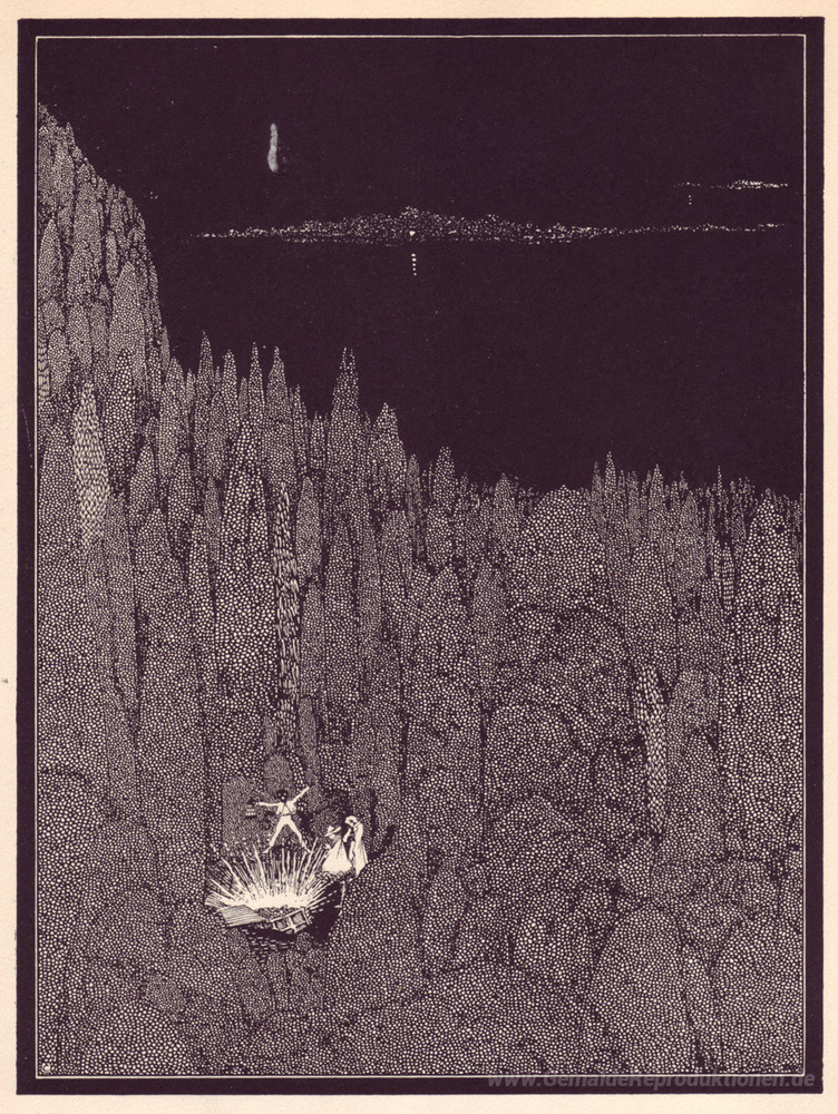 Willkommen in der faszinierenden Welt der Ölgemälde, wo die Grenzen zwischen Realität und Fantasie verschwimmen. Unsere Auswahl umfasst meisterhafte Werke von talentierten Künstlern wie Harry Clarke, der mit seinem einzigartigen Stil und seiner technischen Meisterschaft beeindruckt. Sein berühmtes Gemälde Tales of Mystery and Imagination ist nicht nur ein visuelles Fest, sondern auch eine Hommage an die mysteriöse literarische Welt Edgar Allan Poes. Clarke kombiniert lebendige Farben und feine Details, um eine tiefgreifende Stimmung zu erzeugen, die den Betrachter in ihren Bann zieht.