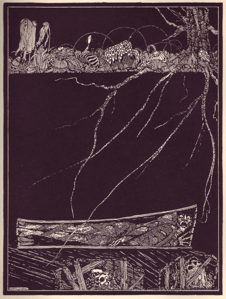 Wir bieten Ihnen eine handgefertigte Reproduktion auf Leinwand des berühmten Kunstwerks 'Tales of Mystery and Imagination durch Edgar Allan Poe' von Harry Clarke, aus dem Reproduktionsmuseum.