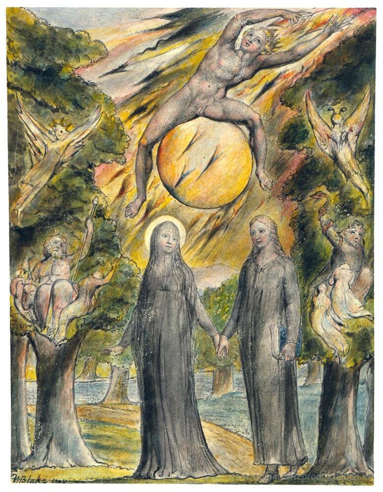 Wir bieten Ihnen eine handgefertigte Reproduktion auf Leinwand des berühmten Kunstwerks 'The Sun in seinem Zorn' von William Blake, aus dem Reproduktionsmuseum.