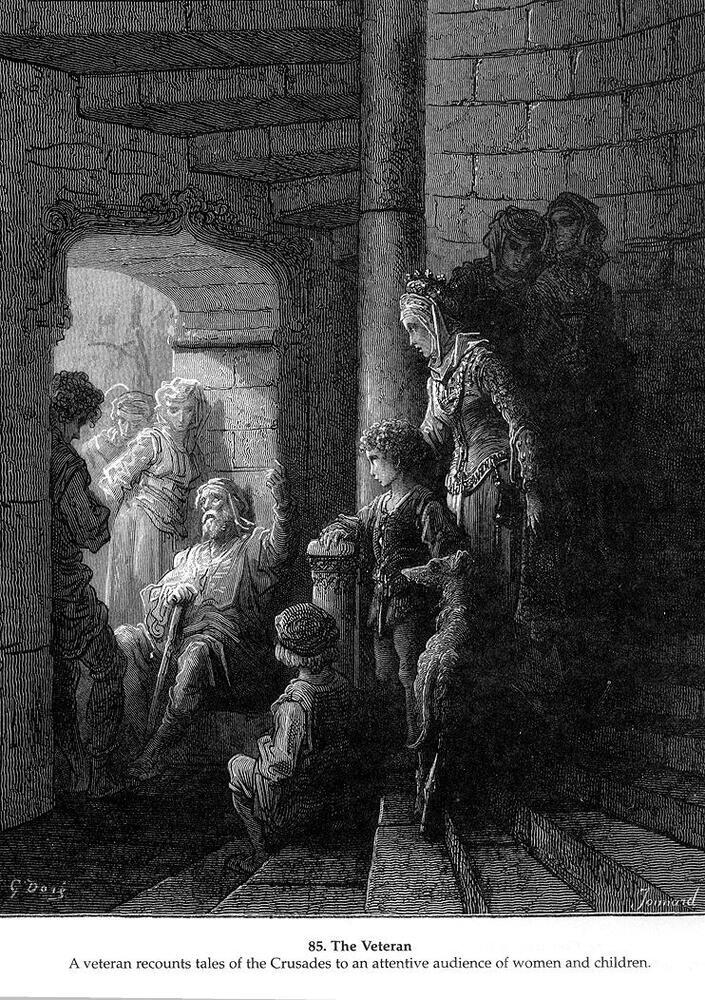 Wir bieten Ihnen eine handgefertigte Reproduktion auf Leinwand des berühmten Kunstwerks 'The Veteran' von Gustave Dore, aus dem Reproduktionsmuseum.