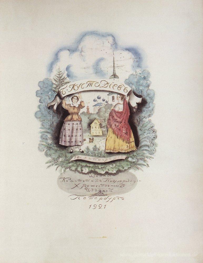 Wir bieten Ihnen eine handgefertigte Reproduktion auf Leinwand des berühmten Kunstwerks 'Titelblatt' von Boris Kustodiev, aus dem Reproduktionsmuseum.