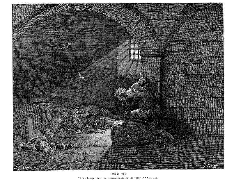 Wir bieten Ihnen eine handgefertigte Reproduktion auf Leinwand des berühmten Kunstwerks 'Ugolino' von Gustave Dore, aus dem Reproduktionsmuseum.