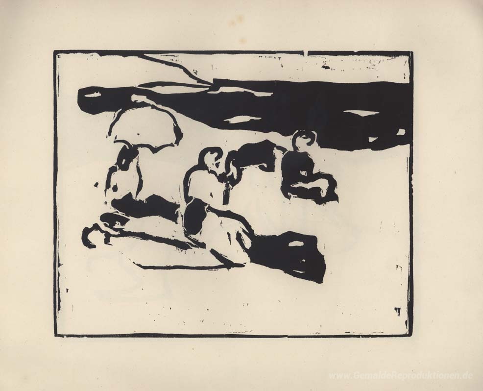 Wir bieten Ihnen eine handgefertigte Reproduktion auf Leinwand des berühmten Kunstwerks 'Vom Strande. Seite 7' von Arthur Segal, aus dem Reproduktionsmuseum.