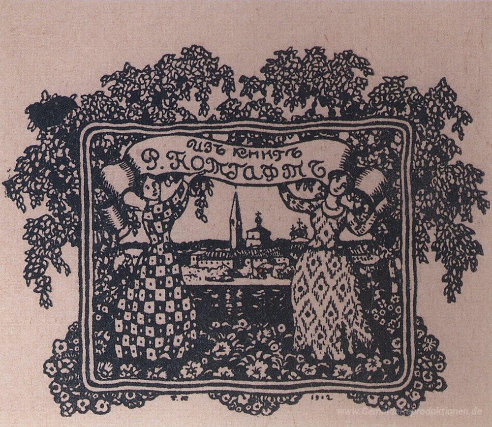 Wir bieten Ihnen eine handgefertigte Reproduktion auf Leinwand des berühmten Kunstwerks 'Von der Bücher von R. Notgaft. Exlibris' von Boris Kustodiev, aus dem Reproduktionsmuseum.