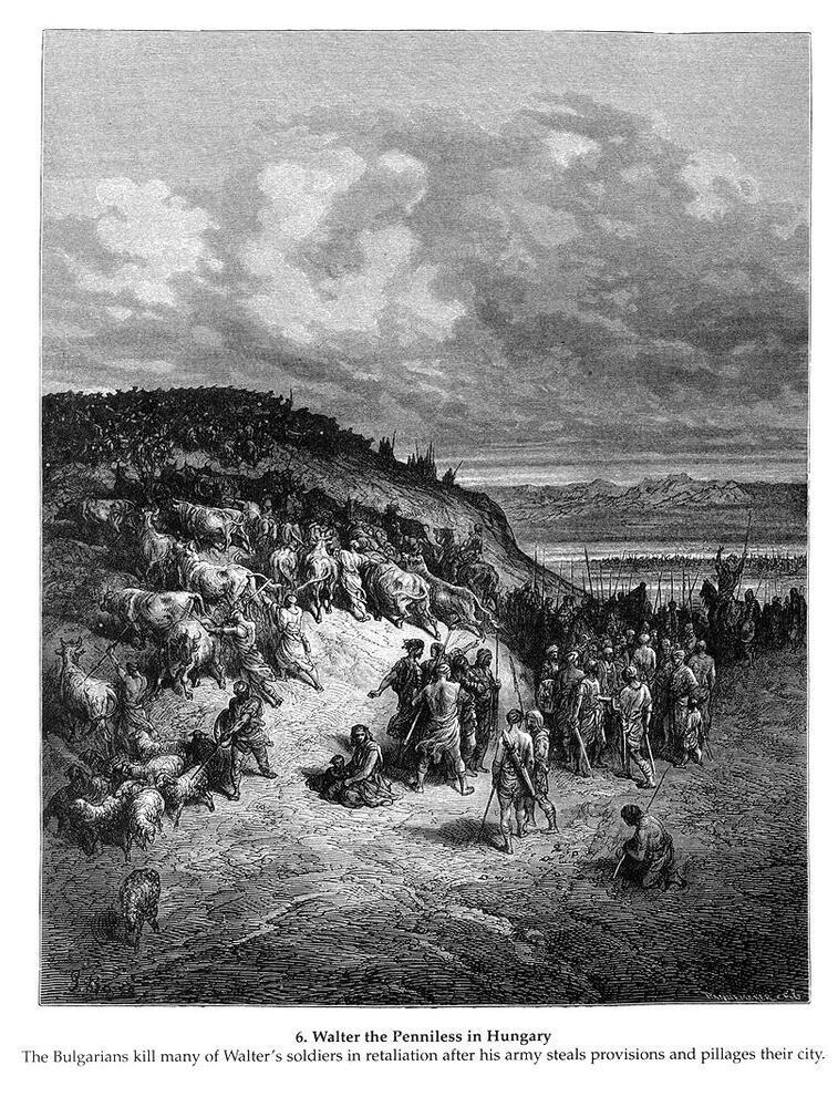 Wir bieten Ihnen eine handgefertigte Reproduktion auf Leinwand des berühmten Kunstwerks 'Walter der Penniless in Ungarn' von Gustave Dore, aus dem Reproduktionsmuseum.