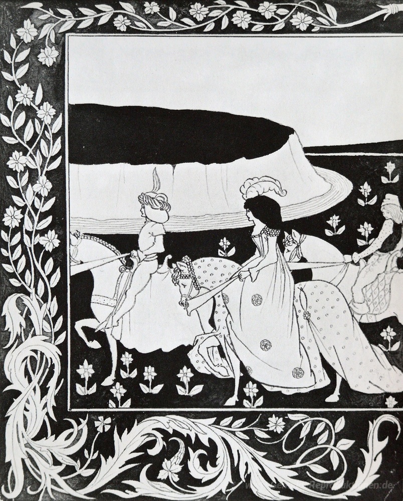 Wir bieten Ihnen eine handgefertigte Reproduktion auf Leinwand des berühmten Kunstwerks 'Wie Königin Guenever ritt Maying I' von Aubrey Beardsley, aus dem Reproduktionsmuseum.