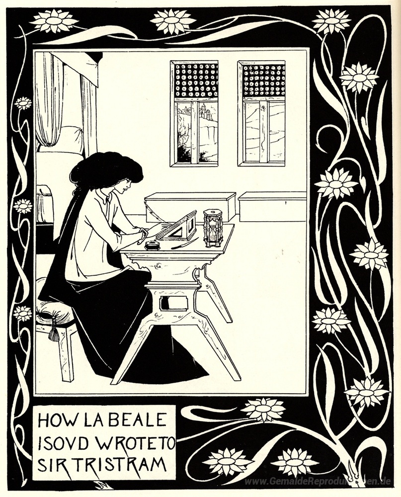Wir bieten Ihnen eine handgefertigte Reproduktion auf Leinwand des berühmten Kunstwerks 'Wie La Beale Isoud Schrieb an Sir Tristram' von Aubrey Beardsley, aus dem Reproduktionsmuseum.