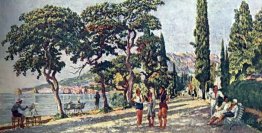 Nackt Stehen und legte ihre Hand auf ihrer linken Schulter