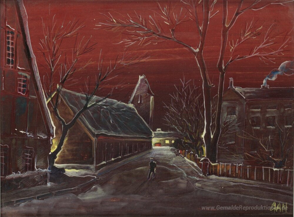 Wir bieten Ihnen eine handgefertigte Reproduktion auf Leinwand des berühmten Kunstwerks 'Gatuscen' von Gosta Adrian-Nilsson, aus dem Reproduktionsmuseum.