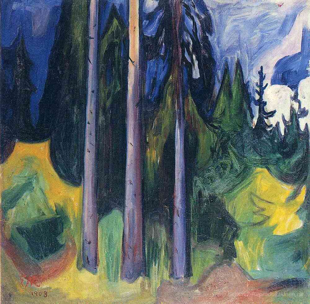Wir bieten Ihnen eine handgefertigte Reproduktion auf Leinwand des berühmten Kunstwerks 'Wald' von Edvard Munch, aus dem Reproduktionsmuseum.