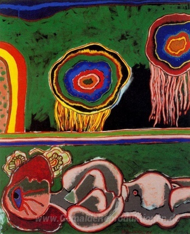 Wir bieten Ihnen eine handgefertigte Reproduktion auf Leinwand des berühmten Kunstwerks 'Planets' von Corneille, aus dem Reproduktionsmuseum.