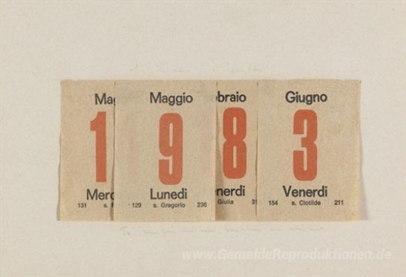Wir bieten Ihnen eine handgefertigte Reproduktion auf Leinwand des berühmten Kunstwerks '1983' von Alighiero Boetti, aus dem Reproduktionsmuseum.