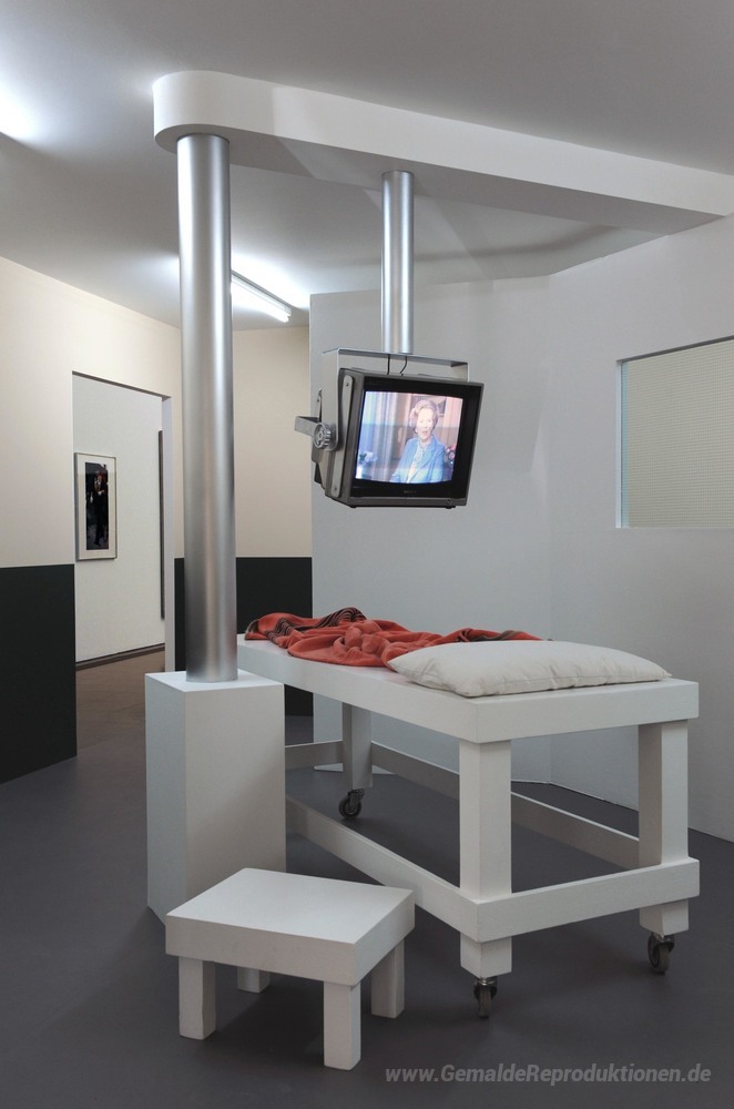 Wir bieten Ihnen eine handgefertigte Reproduktion auf Leinwand des berühmten Kunstwerks 'Behandlungsraum' von Richard Hamilton, aus dem Reproduktionsmuseum.