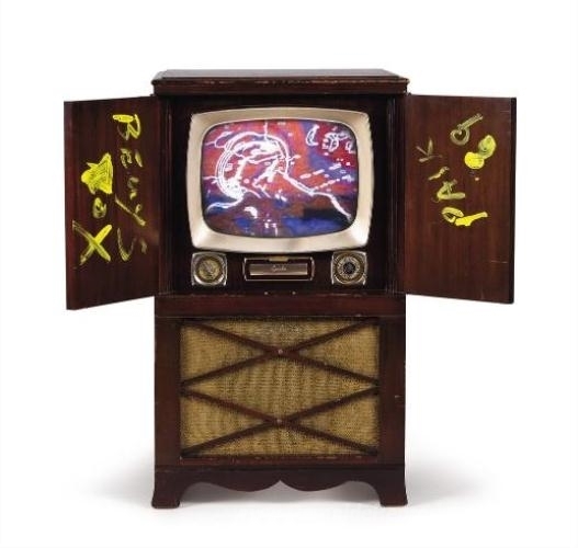 Wir bieten Ihnen eine handgefertigte Reproduktion auf Leinwand des berühmten Kunstwerks 'Beuys Vox' von Nam June Paik, aus dem Reproduktionsmuseum.