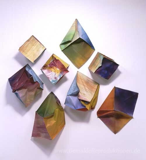 Wir bieten Ihnen eine handgefertigte Reproduktion auf Leinwand des berühmten Kunstwerks 'Cubes' von Sam Gilliam, aus dem Reproduktionsmuseum.