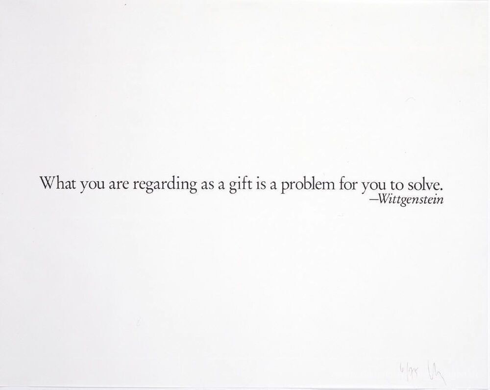 Wir bieten Ihnen eine handgefertigte Reproduktion auf Leinwand des berühmten Kunstwerks 'Exlibris (Wittgensteins Geschenk)' von Joseph Kosuth, aus dem Reproduktionsmuseum.