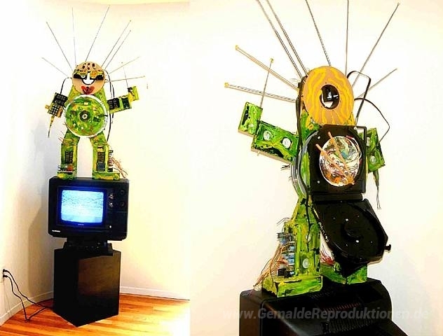 Wir bieten Ihnen eine handgefertigte Reproduktion auf Leinwand des berühmten Kunstwerks 'Fin de Siecle' von Nam June Paik, aus dem Reproduktionsmuseum.