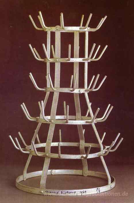 Wir bieten Ihnen eine handgefertigte Reproduktion auf Leinwand des berühmten Kunstwerks 'Flaschengestell' von Marcel Duchamp, aus dem Reproduktionsmuseum.