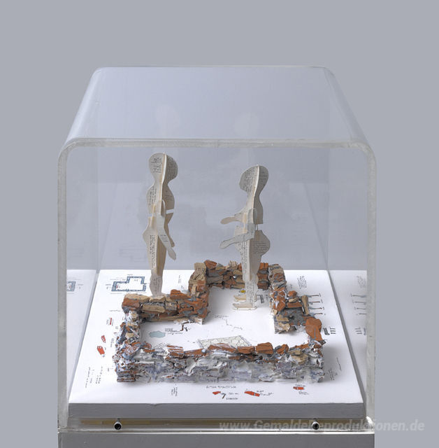 Wir bieten Ihnen eine handgefertigte Reproduktion auf Leinwand des berühmten Kunstwerks 'Hebdomeros e l'architetto' von Gianfranco Baruchello, aus dem Reproduktionsmuseum.