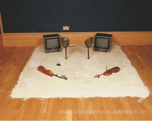 Wir bieten Ihnen eine handgefertigte Reproduktion auf Leinwand des berühmten Kunstwerks 'Hydra-Budda' von Nam June Paik, aus dem Reproduktionsmuseum.