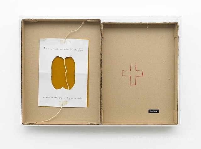 Wir bieten Ihnen eine handgefertigte Reproduktion auf Leinwand des berühmten Kunstwerks 'Il ya un noeud au milieu de cette ficelle au centre de cette pag' von Robert Filliou, aus dem Reproduktionsmuseum.