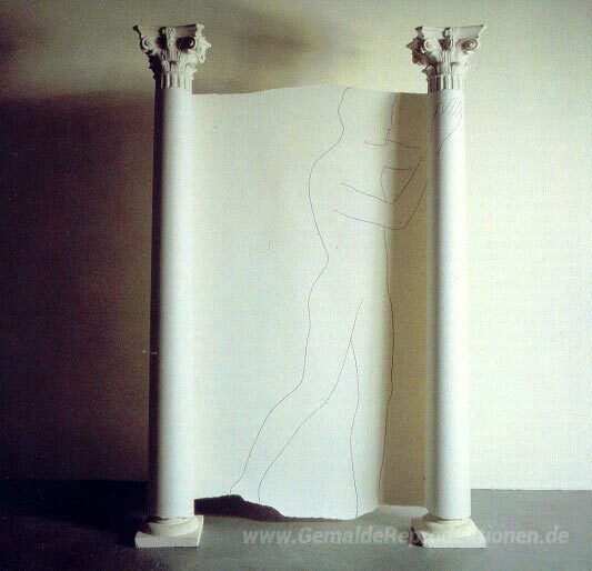 Wir bieten Ihnen eine handgefertigte Reproduktion auf Leinwand des berühmten Kunstwerks 'Karyatide' von Giulio Paolini, aus dem Reproduktionsmuseum.