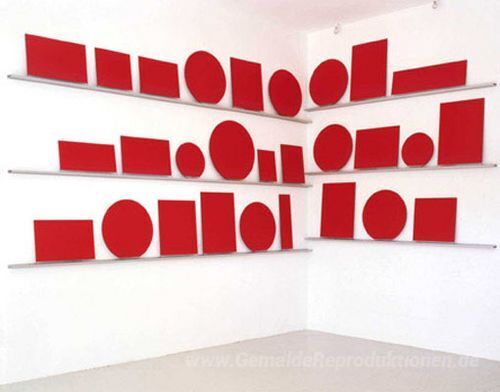 Wir bieten Ihnen eine handgefertigte Reproduktion auf Leinwand des berühmten Kunstwerks 'Katalog # 1 (Rouge-Crestet)' von Pedro Cabrita Reis, aus dem Reproduktionsmuseum.