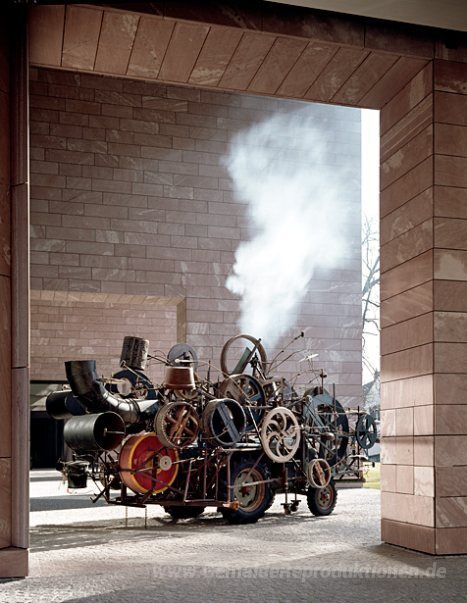 Wir bieten Ihnen eine handgefertigte Reproduktion auf Leinwand des berühmten Kunstwerks 'Klamauk' von Jean Tinguely, aus dem Reproduktionsmuseum.