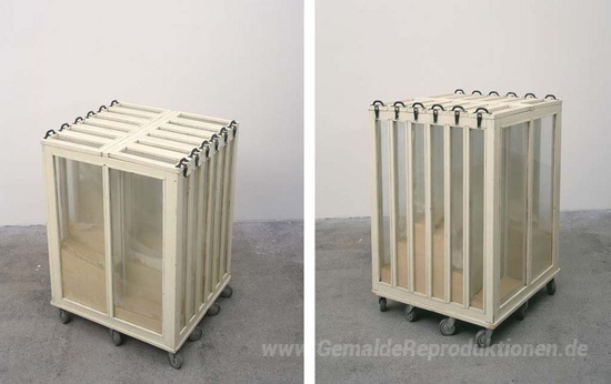 Wir bieten Ihnen eine handgefertigte Reproduktion auf Leinwand des berühmten Kunstwerks 'Knoblauchtruhe' von Dieter Roth, aus dem Reproduktionsmuseum.