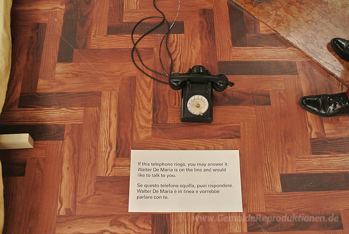 Wir bieten Ihnen eine handgefertigte Reproduktion auf Leinwand des berühmten Kunstwerks 'Kunst durch Telefon' von Walter De Maria, aus dem Reproduktionsmuseum.