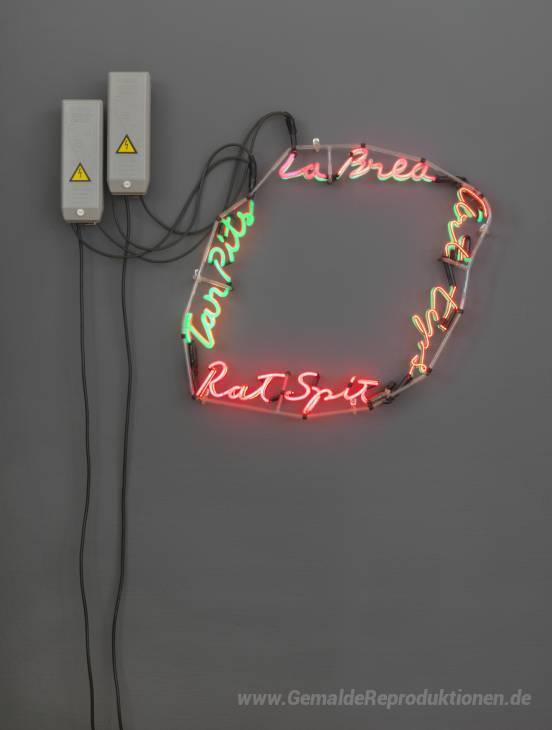 Wir bieten Ihnen eine handgefertigte Reproduktion auf Leinwand des berühmten Kunstwerks 'La Brea / Art Tips / Ratte Spit / Tar Pits' von Bruce Nauman, aus dem Reproduktionsmuseum.