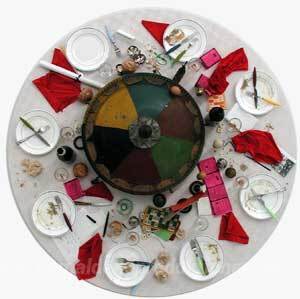 Wir bieten Ihnen eine handgefertigte Reproduktion auf Leinwand des berühmten Kunstwerks 'Les æufs sont faits IV' von Daniel Spoerri, aus dem Reproduktionsmuseum.