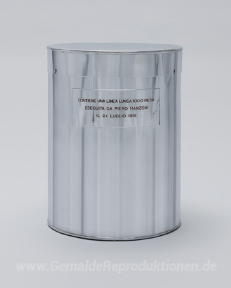 Wir bieten Ihnen eine handgefertigte Reproduktion auf Leinwand des berühmten Kunstwerks 'Line 1000 Meter lang' von Piero Manzoni, aus dem Reproduktionsmuseum.