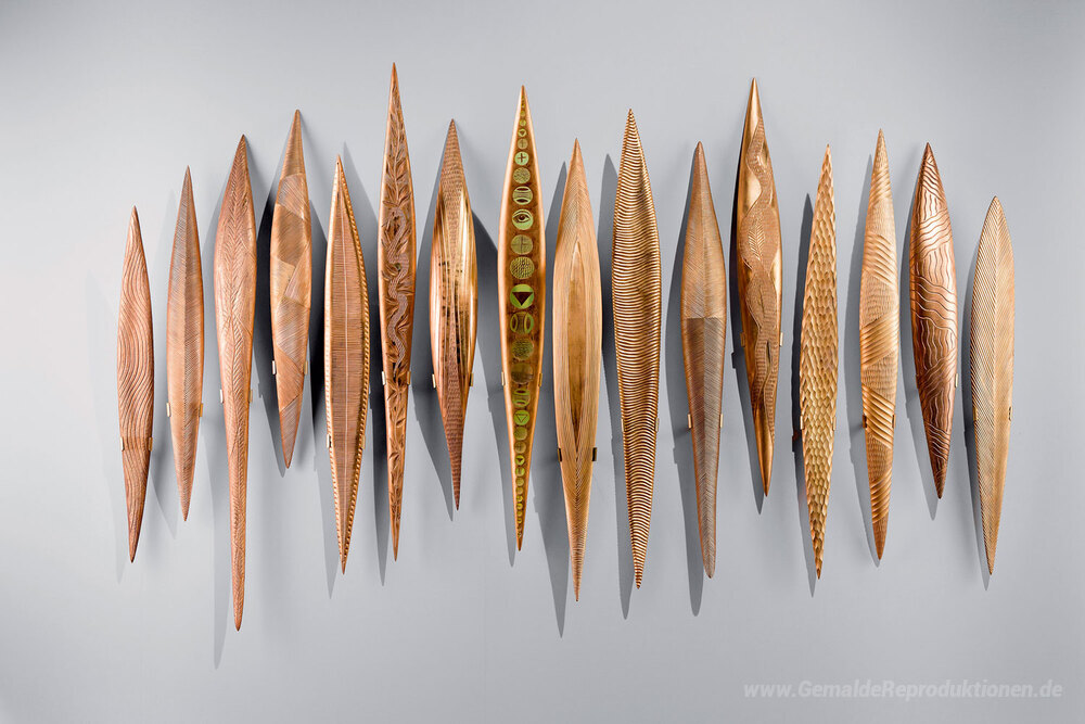 Wir bieten Ihnen eine handgefertigte Reproduktion auf Leinwand des berühmten Kunstwerks 'Masai (Masai d'Oro)' von Lino Tagliapietra, aus dem Reproduktionsmuseum.