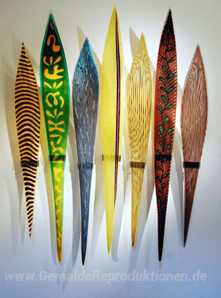 Wir bieten Ihnen eine handgefertigte Reproduktion auf Leinwand des berühmten Kunstwerks 'Masai' von Lino Tagliapietra, aus dem Reproduktionsmuseum.