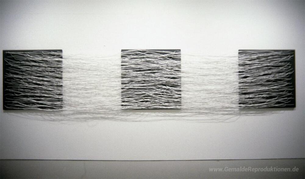 Wir bieten Ihnen eine handgefertigte Reproduktion auf Leinwand des berühmten Kunstwerks 'Metronomischen Unregelmäßigkeit II' von Eva Hesse, aus dem Reproduktionsmuseum.