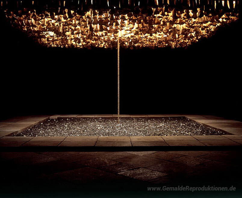 Wir bieten Ihnen eine handgefertigte Reproduktion auf Leinwand des berühmten Kunstwerks 'Mission / Missionen (Wie Kathedralen bauen)' von Cildo Meireles, aus dem Reproduktionsmuseum.