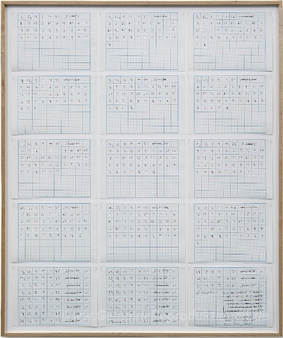 Wir bieten Ihnen eine handgefertigte Reproduktion auf Leinwand des berühmten Kunstwerks 'Monat Dezember XII 89' von Hanne Darboven, aus dem Reproduktionsmuseum.