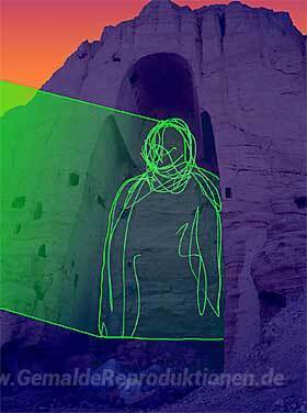 Wir bieten Ihnen eine handgefertigte Reproduktion auf Leinwand des berühmten Kunstwerks 'NY Buddha' von Hiro Yamagata, aus dem Reproduktionsmuseum.