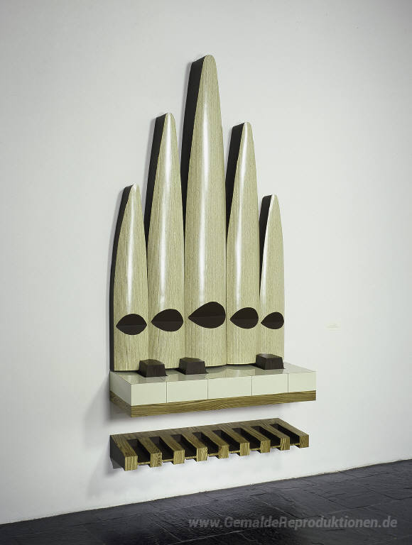 Wir bieten Ihnen eine handgefertigte Reproduktion auf Leinwand des berühmten Kunstwerks 'Orgel von Ursache und Wirkung III' von Richard Artschwager, aus dem Reproduktionsmuseum.